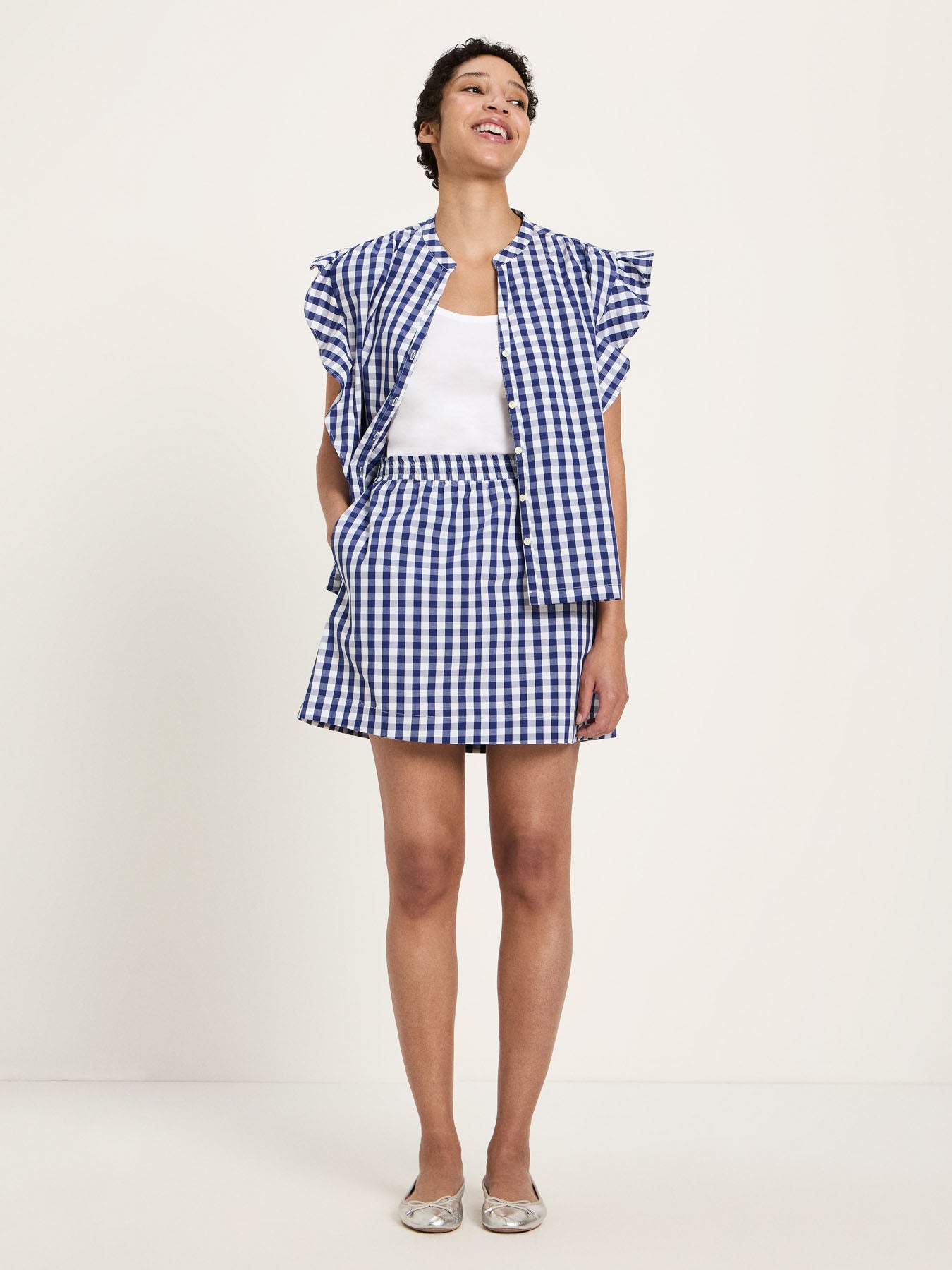 Klassisch, frisch und unkompliziert: Der Vichy-Karo Rock aus Bio-Baumwolle ist ein echtes Sommer-Essential und bringt einen zeitlosen Look in deine Garderobe. Das charakteristische Karomuster wirkt feminin und modern zugleich – perfekt für abwechslungsreiche Styles von casual bis gepflegt. Durch seinen angenehm leichten Stoff trägt sich der Rock besonders komfortabel und eignet sich ideal für warme Tage. Die schlichte, vielseitige Silhouette lässt sich mühelos kombinieren: mit T-Shirt und Sneakern für entspannte Alltagslooks oder mit Bluse und Sandalen für einen eleganteren Auftritt.